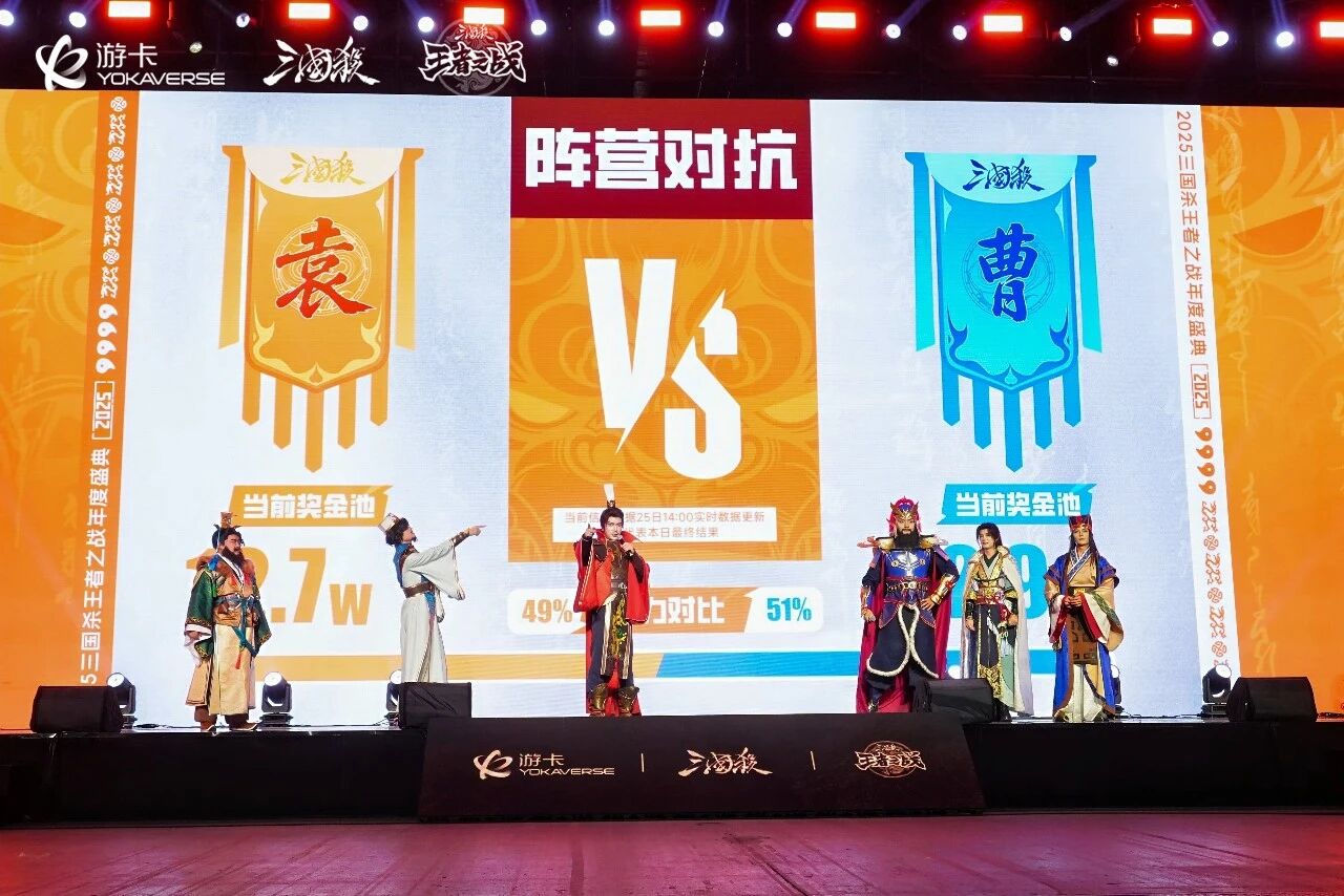 1月24日-25日,为期两天的“2025三国杀年度盛典”在杭州国际博览中心落下帷幕,“三国杀王者之战”旗下的系列赛事也迎来了年度收官。这场以“官渡之战”为主题的沉浸式盛会中,上万平米的对战现场吸引了数千名玩家到场,沉浸式感受“千人面杀”全民竞技的快乐,共享总价值百万的丰厚奖池。